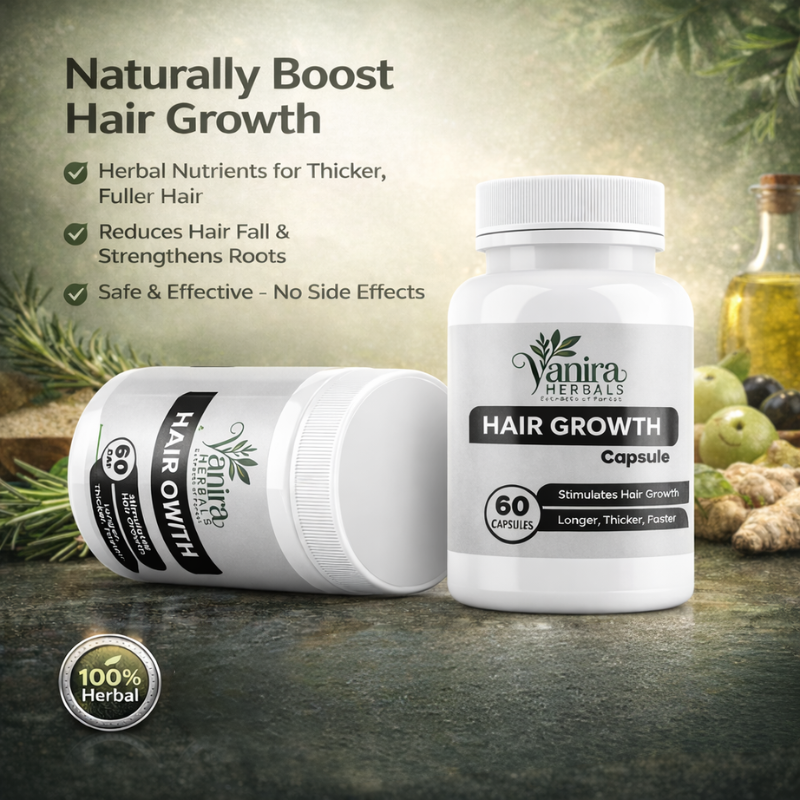 These herbal hair growth capsules support stronger hair naturally. They help reduce hair fall. They support healthy hair roots. These capsules nourish the scalp. They improve blood flow to hair follicles. Herbal support helps new hair growth. They improve hair thickness over time. They help strengthen weak strands. These herbal capsules support shine and smoothness. No harsh chemicals are present. Additives used in these products are not toxic. Safe to use every day. These capsules will provide your hair with the nutrients it needs over an extended period of time. These capsules provide nutrition to the scalp. They enhance blood flow to the hairs' follicles.